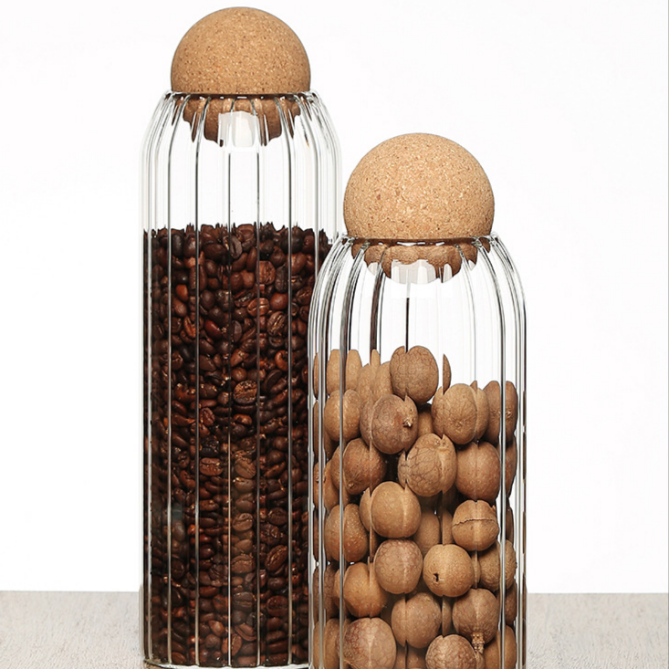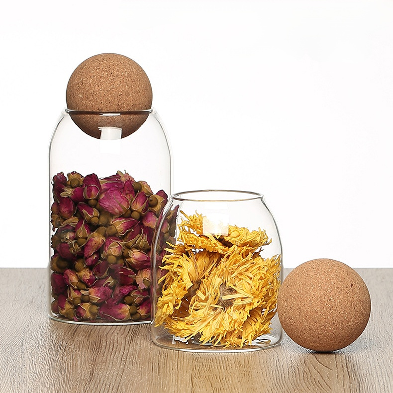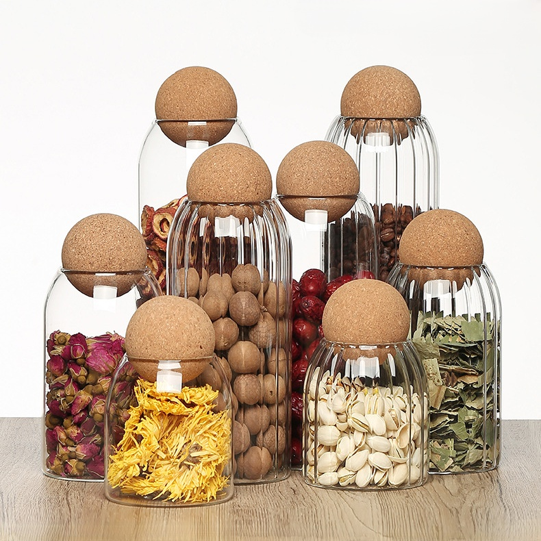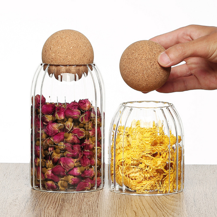 Tarro de almacenamiento esférico con tapa de corcho